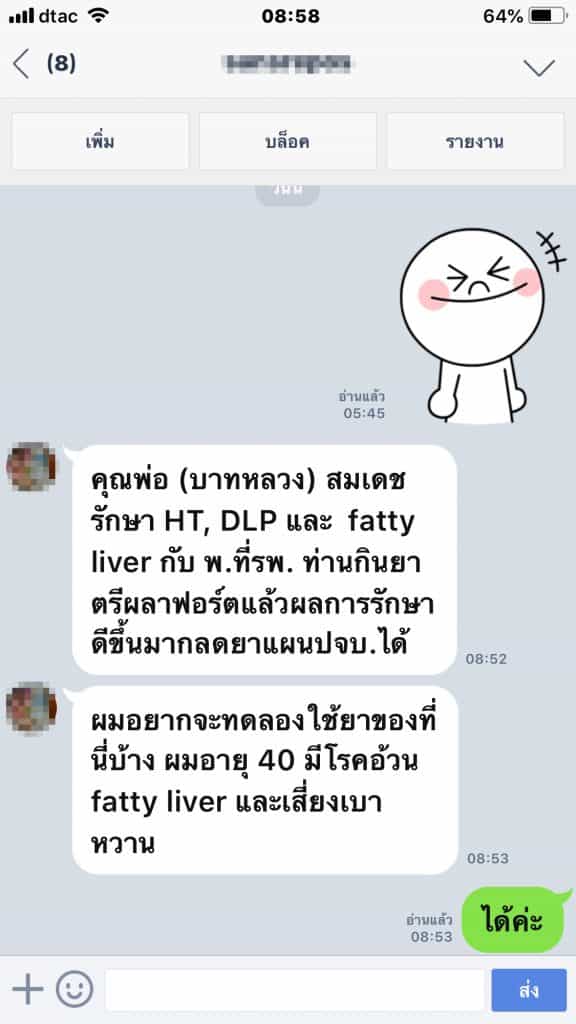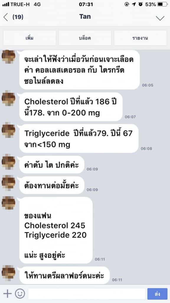 1. หลังรับประทานไปแล้ว 2-3 เดือนขึ้นไป สามารถไปตรวจซ้ำได้เลย พบว่า ผลการตรวจค่า LAB ต่างๆ เช่น CHOLESTEROL / Triglyceride / ค่าตับ / ระดับน้ำตาล
