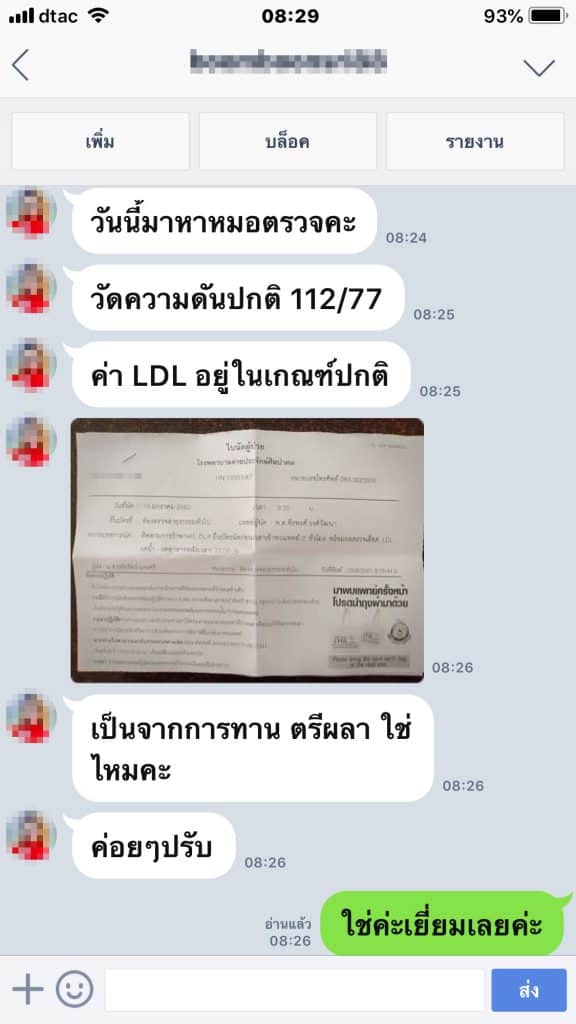- 98% พึงพอใจ เมื่อไปตรวจค่าไขมัน คอเลสเตอรอล LDL ไตรกลีเซอไรด์ ซ้ำ ทุกๆ 1-2 เดือน (ผลลัพธ์อาจเปลี่ยนแปลงไปแล้วแต่บุคคล)