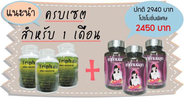 1 เดือน ใช้ ยาชักมดลูก + ตรีผลา อย่างละ 3 ขวด