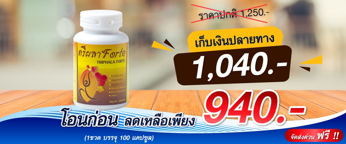 ตรีผลา FORTE สมุนไพรแก้ไขมันในเลือด ไขมันอุดตันในเลือดแบบได้ผล เซ็ตสุดคุ้ม 10 กระปุก